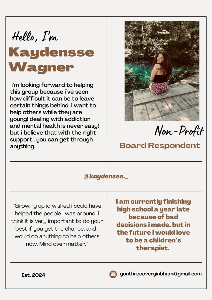 Kaydensse W., Youth Recovery Group Bellingham’s board respondent.